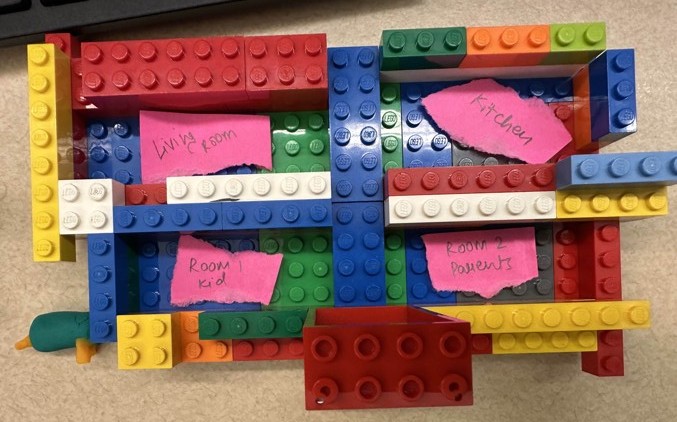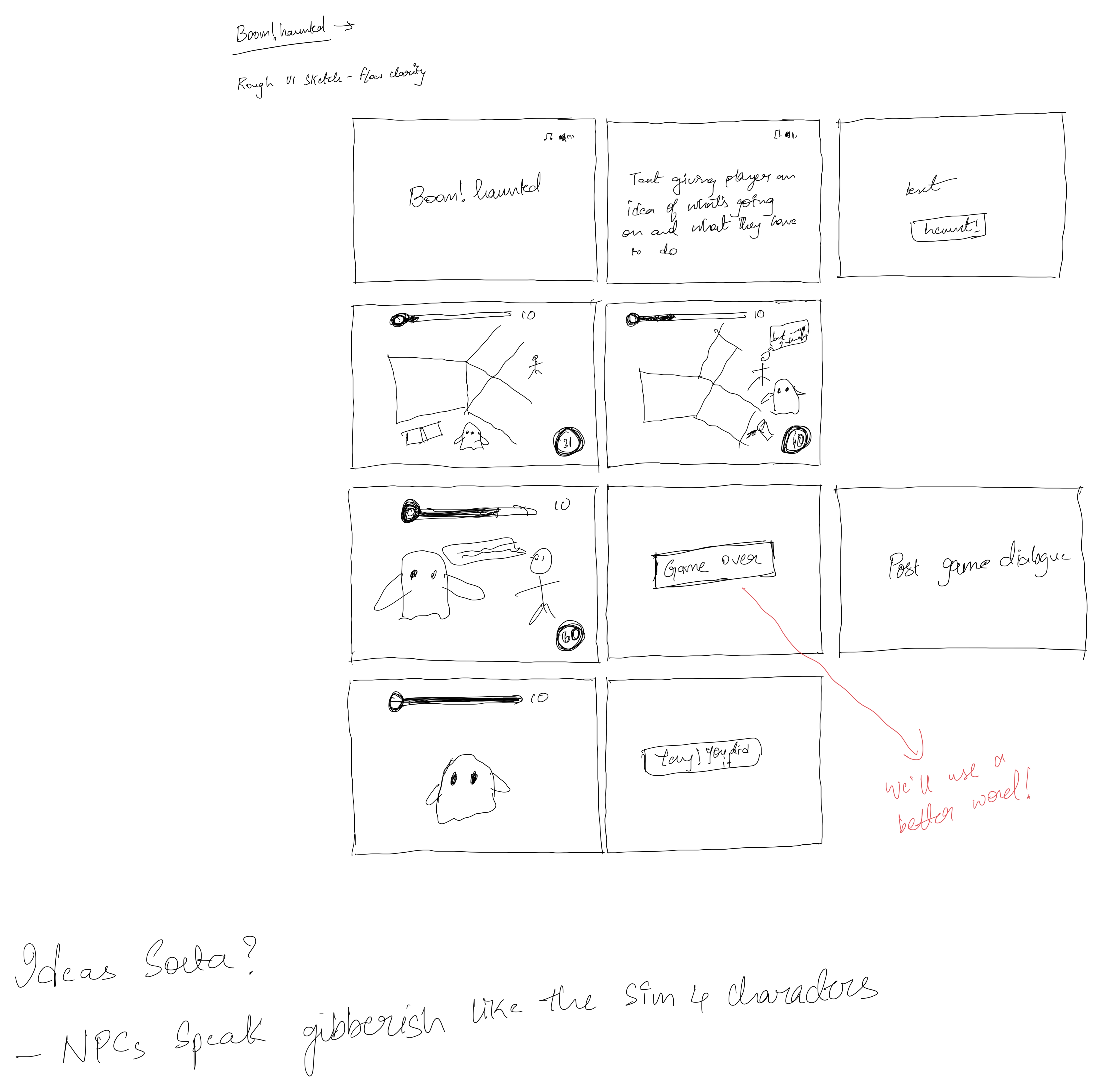 During our first team meeting we sketched, blocked (quite literally with Legos), and planned some ideas for our game. Our main character is the ghost. We will use our ghost to tell the story of npcs, showing their experiences through interactions with items and other npcs. We decided the main two forms of humor would be in the dialogue and physical. There are some basic objectives of the game we want the player to focus on. The main one is gathering hauntings, indicated by a bar that fills. You can do this by interacting with the world and npcs. Once the player gathers the necessary hauntings, they can complete the game. The main drive behind this mechanic is to force the player to experience the story to finish the game. Below are some images showing what we created during our first meeting.